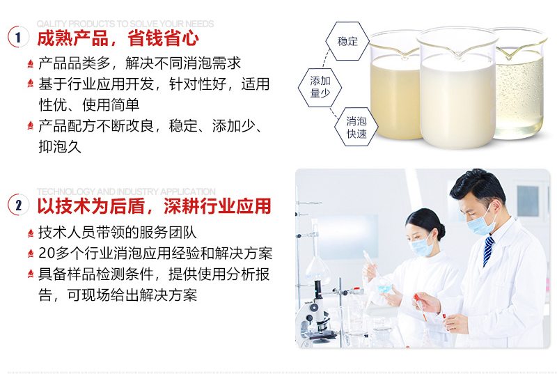 2、根據不同的體系,消泡劑的添加量可為0.1-1%,添加量根據客戶具體情況實踐而定;
